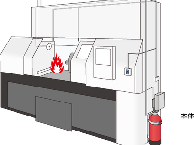 本製品は、工作機械や製造装置を火災から守るための自動消火装置です。防護対象物の温度上昇を温度センサ(サーミスタセンサ)で検知し、取り付けられた放射ノズルから消火薬剤を自動で放出します。手動操作による起動も可能で、確実な防火対策により製造現場の安全を支えます。