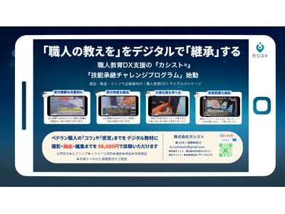 ベテラン職人の引退が進む中、建設・製造・インフラ業界では、現場スキルをいかに若手や外国人社員へ承継していくかが深刻な課題となっています。株式会社カシスト(本社:鹿児島県鹿児島市、代表取締役:吉松良平)は、特許出願済みのスキル抽出技術を活用し、現場教育をDX化する職人教育支援ソリューション「カシスト(R)︎」において、企業が手軽に技能承継を始められる「技能承継チャレンジプログラム」を開始します。