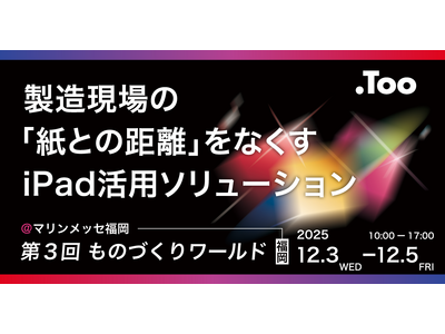 クリエイティブ市場の総合商社・株式会社Too(本社/東京都港区虎ノ門3-4-7、社長/石井剛太、以下Too)は、2025年12月3日(水) - 5日(金)にマリンメッセ福岡で開催される「第3回 ものづくりワールド 福岡」の「製造業DX展」に出展します。
