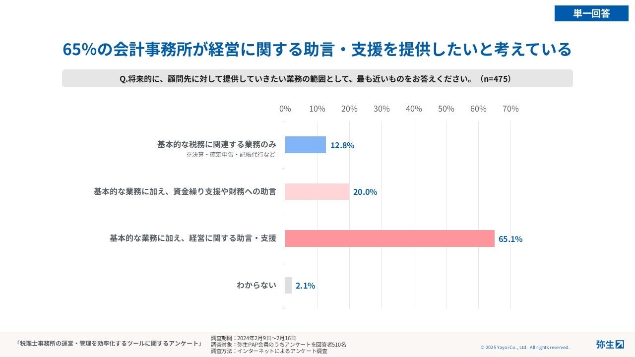 <65%の会計事務所が経営に関する助言・支援を提供したいと考えている>