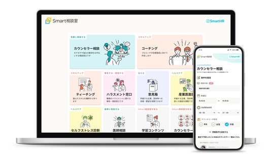 「働く人の『モヤモヤ』を解消し、『個人の成長』と『組織の成長』を一致させる」をミッションに、法人向けオンライン対人支援プラットフォームを開発、運営しています。2021年2月、医療系事業会社で10年間、新規事業開発と組織マネジメントに従事した藤田康男が代表として設立し、メンタル不調の未然防止により企業の健康経営を後押しする社外相談窓口サービス「Smart相談室」と、個人の可能性を最大化し企業の人的資本経営を加速させるコーチングサービス「Smartマイコーチ」を展開しています。Smart相談室はSmartHRのグループ会社です。