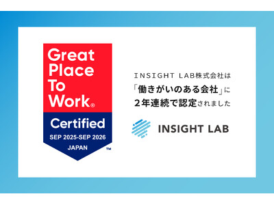 INSIGHT LAB株式会社(本社:東京都新宿区、代表取締役社長 CEO:遠山 功、証券コード:227A、以下 当社)は、Great Place to Work(R) Institute Japan(以下 GPTWジャパン)が実施する「働きがいのある会社」調査において、2年連続で認定企業として選出されました。