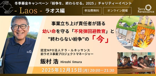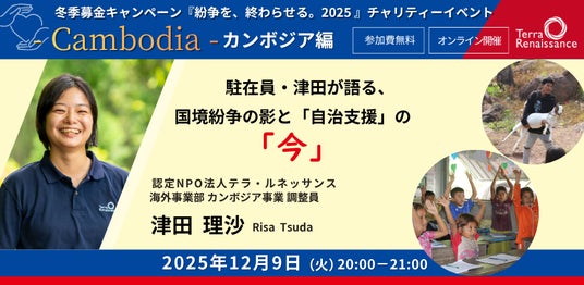 認定NPO法人テラ・ルネッサンス(理事長:吉田真衣、所在地:京都府京都市)は、冬季募金キャンペーンの一環として、ウクライナ、カンボジア、ラオス、ウガンダで活動中の海外駐在員による全4回のチャリティーイベントを開催します。今この瞬間も紛争などで傷ついている人びとのために、「今必要なこと」をお伝えするとともに、駐在員の暮らしなど現地の「空気感」について自由に質問いただける交流の時間も設けています。