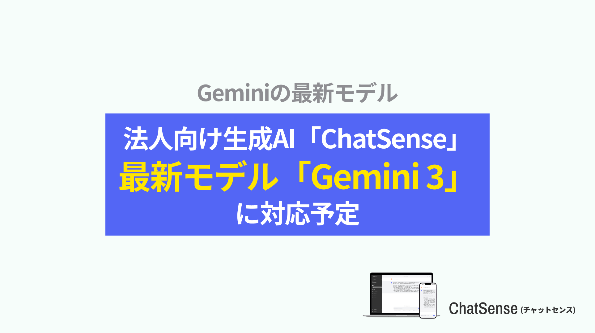 大企業の知的活動を最速にする株式会社ナレッジセンス(本社:東京都港区、代表取締役:門脇敦司、以下ナレッジセンス)は、当社が提供する、セキュアな環境でAIエージェントを企業利用できるサービス「ChatSense」について、Google社の最新AIである Gemini 3 に対応予定であることを発表します。