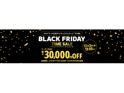 スカイパックツアーズ株式会社(本社:東京都中央区、社長:横山正巳)は、スカイマークの航空券とホテルがセットになった旅行商品(ダイナミックパッケージ)『たす旅』でBLACK FRIDAY TIME SALEの販売を11月20日(木)11時に開始しました。
