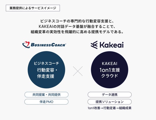従業員マネジメント業務のテクノロジーによる進化を支援する株式会社KAKEAI(本社:東京都渋谷区、代表取締役社長:皆川 恵美、以下「当社」)は、ビジネスコーチ株式会社(本社:東京都港区、代表取締役社長:細川 馨、東証グロース:9562、以下「ビジネスコーチ社」)と、人的資本経営の実効性向上を目的とした業務提携契約を締結しましたので、下記の通りお知らせいたします。