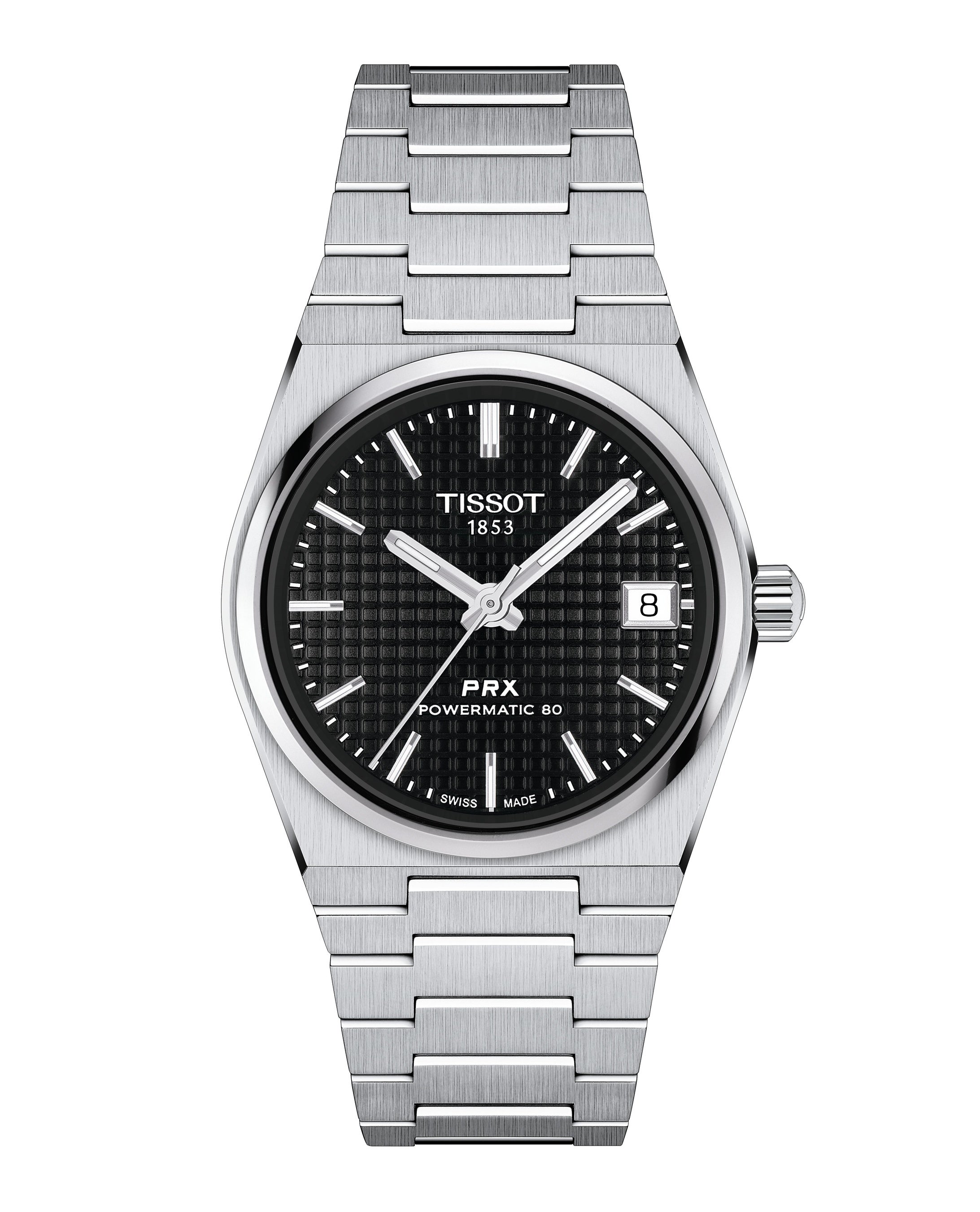 ティソ PRX オートマティックは、35mmと40mm、42mmのケースサイズで、ムーブメントには高い耐磁性能を可能にするニヴァクロン(TM)製ひげゼンマイを採用。35mmと40mmモデルは、最長80時間パワーリザーブの「パワーマティック 80」ムーブメントを搭載、42mmのクロノグラフは最長60時間パワーリザーブを誇ります。