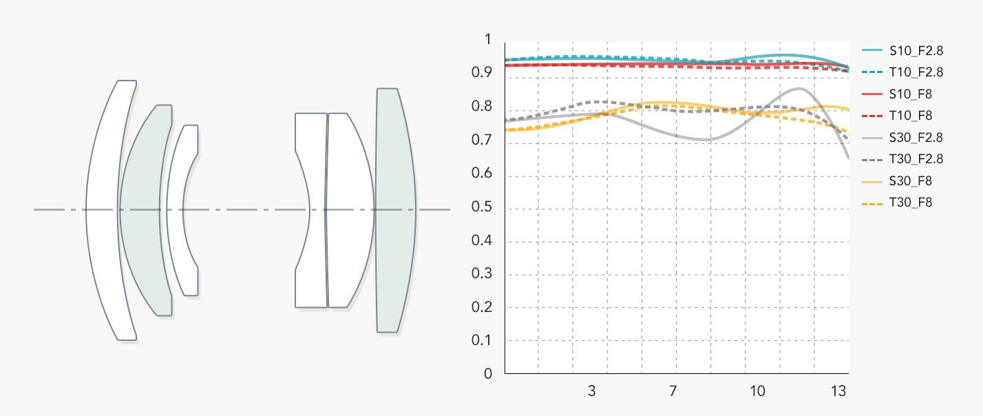 - レンズ構成 : 5群6枚(高屈折レンズ2枚)