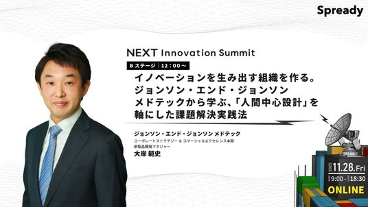12:00~12:45「イノベーションを生み出す組織を作る。ジョンソン・エンド・ジョンソン メドテックから学ぶ、「人間中心設計」を軸にした課題解決実践法」