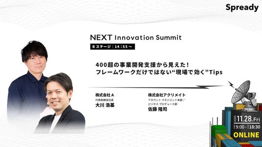 新規事業支援サービスを提供するSpready株式会社(本社:東京都渋谷区、代表取締役社長:佐古雅亮、以下「当社」)は、2025年11月28日(金)に新規事業の取り組みや知見を発信するカンファレンス「NEXT Innovation Summit 2025 in Winter 新規事業担当者のための『学び』と『出会い』があふれる1日(以下「本イベント」)」申し込み者数が2,500名を突破したことをお知らせします。