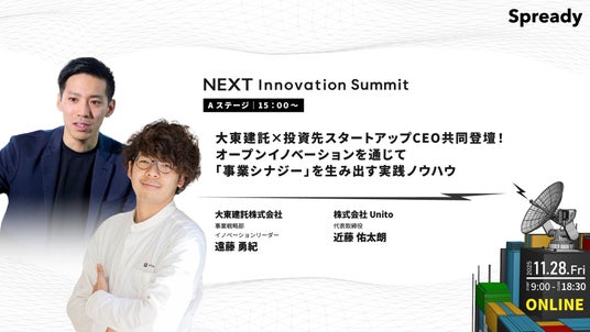 15:00~15:45「大東建託×投資先スタートアップCEO共同登壇!オープンイノベーションを通じて「事業シナジー」を生み出す実践ノウハウ」