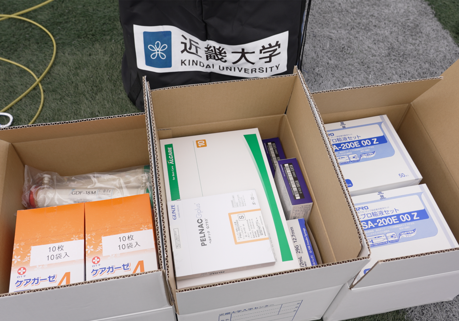 ガーゼや輸液セットなど、13.6kgの医療資材を実際に輸送