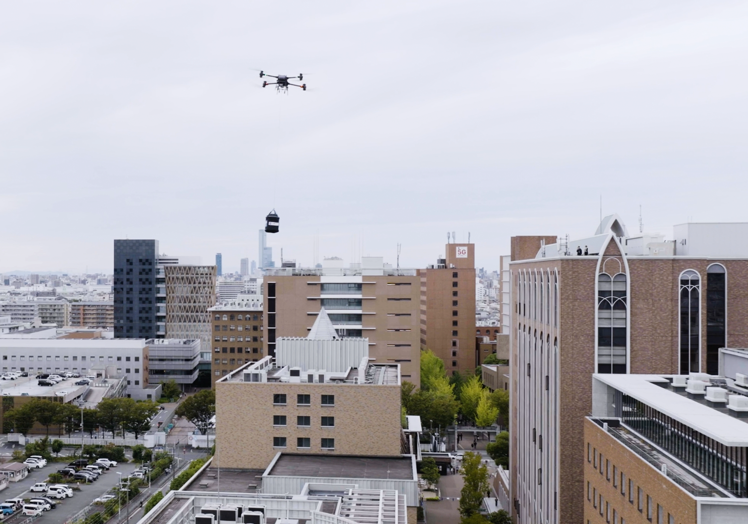 近畿大学東大阪キャンパス上空を飛ぶドローン