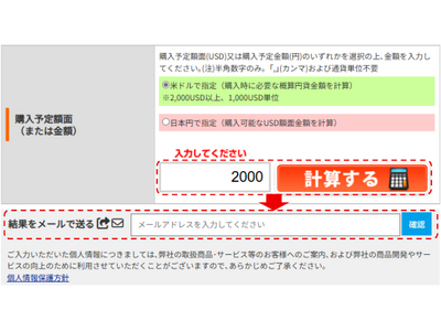米ドルまたは日本円で、債券購入に必要となる購入金額や受取予定金額をご確認いただけます。
