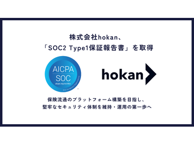 「適正な営業活動」と「組織の強固な監査体制」を実現するクラウド型保険代理店システム「hokan(R)︎」を提供する株式会社hokan(ホカン、本社:東京都中央区、代表取締役社長:横塚 出、以下:当社)は、お客様の重要な情報を保護するセキュリティ体制の客観的な証明として、2025年10月27日付で、米国をはじめとするグローバル市場において、セキュリティの信頼性を担保するために取得がスタンダードである「SOC2 Type1保証報告書」(※1)を取得したことをお知らせします。