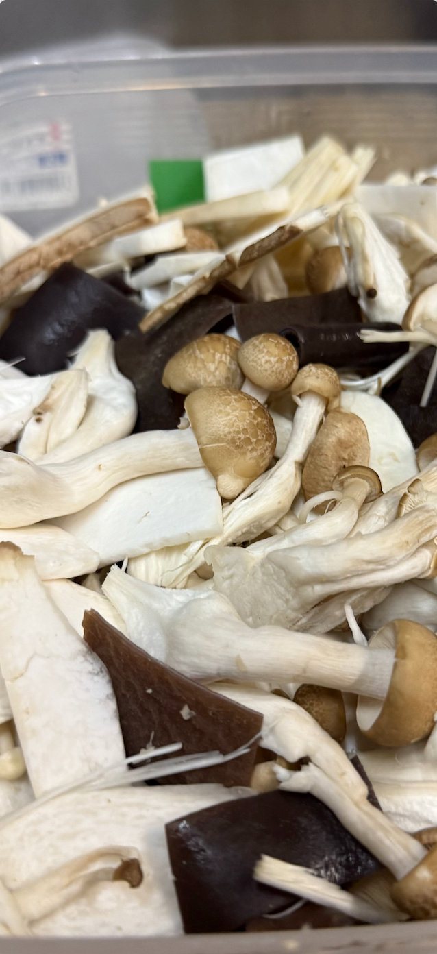 エリンギ、キクラゲ、しめじ、えのきをMIXしたたっぷりきのこ