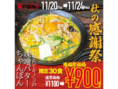 福岡の老舗「ちゃんぽん亭コシキ」より秋の特別企画。4種のキノコと特製味噌が織りなす“旨味の極み”――話題の「もぎたてキノコの味噌バターちゃんぽん」が、5日間限定で大特価販売。