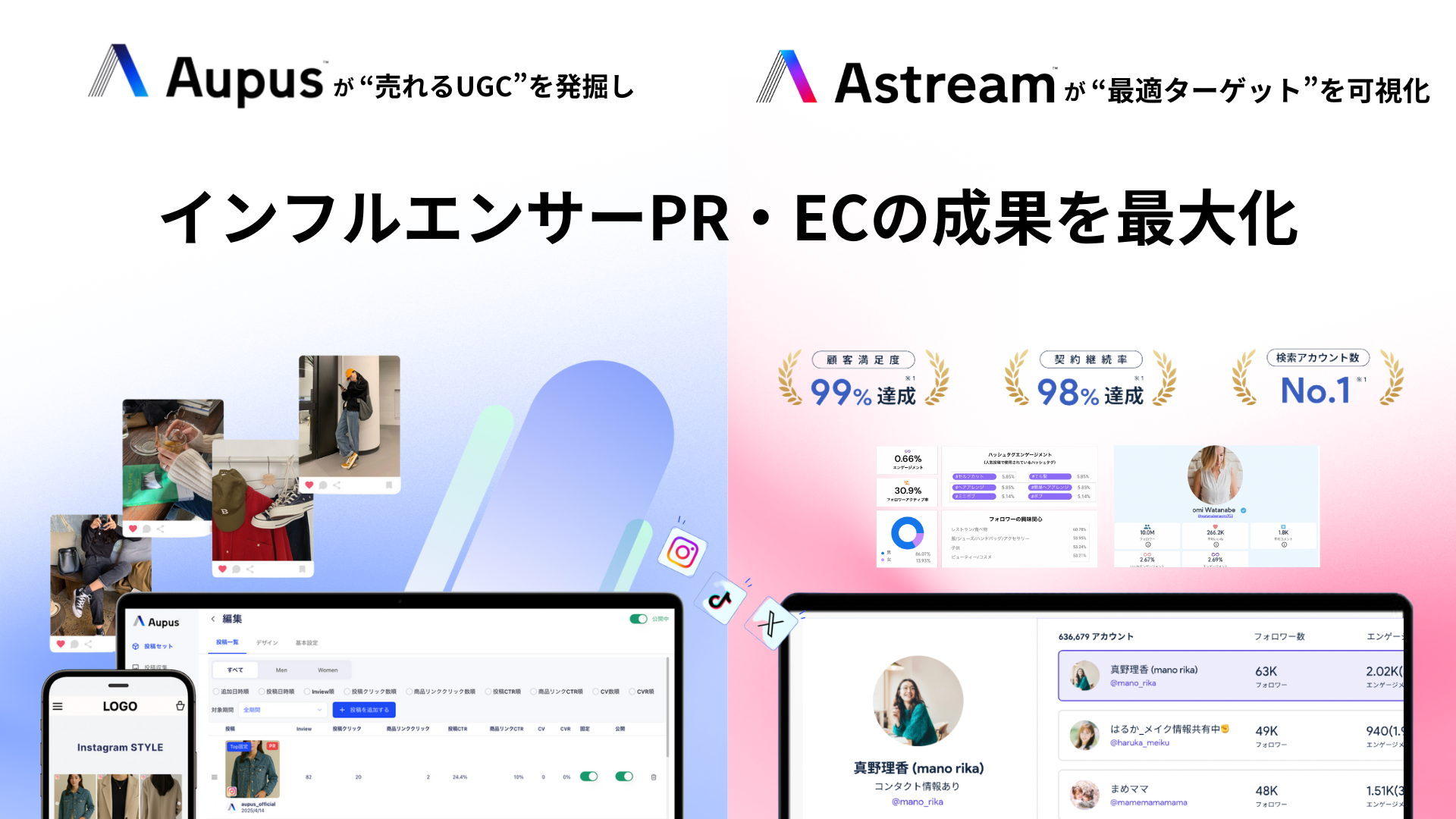 AstreamとAupusを連携させることで、インフルエンサーPRやECのデータを横断的に分析・最適化し、