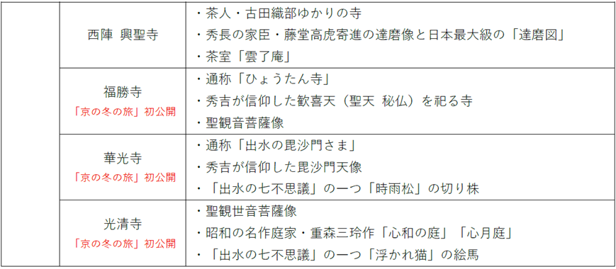 「京の冬の旅」非公開文化財特別公開スタンプラリー、「おこしバス」(定期観光バス)特別