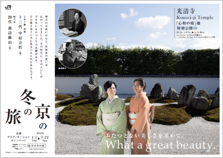 京都市及び京都市観光協会(DMO KYOTO)では、来年1月から3月にかけて、JRグループ6社と連携したデスティネーションキャンペーンとして「京の冬の旅」を実施します。