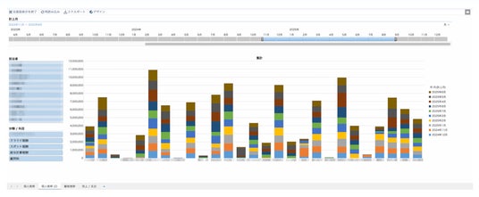 ▲集計アプリをKrewDashboardで可視化した売上情報。構成比やチームごとの月別推移を表している。