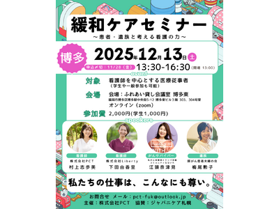 株式会社PCT(本社:福岡県、代表取締役:村上志歩美)は、2025年12月13日(土)に、看護師を中心とする医療従事者向けの特別セミナーを開催いたします。