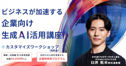 IT関連及びデジタルコンテンツの人材養成スクール・大学・大学院を運営するデジタルハリウッド株式会社(本社:東京都千代田区、代表取締役社長兼CEO:春名啓紀、学長:杉山 知之)は、生成AI教育の第一人者でありSNS総フォロワー50万人を超えるデジタルハリウッド大学の臼井 拓水(usutaku)特任准教授と共同で開発した、