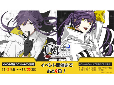 オトメイトイベント公式X(https://x.com/OtomateEvent)とイベント公式HP(https://www.otomate.jp/event/dramatic/charade_maniacs/)では本日より1キャラクターずつ、カウントダウンボイスを公開していきます。