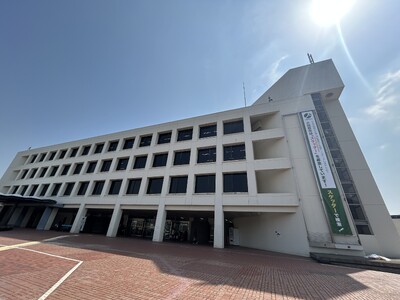 市役所にスケッターの懸垂幕を設置して市民に周知