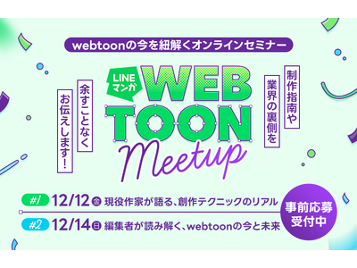 LINE Digital Frontier株式会社 (本社:東京都港区、代表取締役社長:高橋将峰) は、当社が運営する電子コミックサービス「LINEマンガ」https://manga.line.me/ のオリジナルのwebtoon・横読みマンガを生み出す企画・制作・編集部門「LINEマンガ WEBTOON STUDIO」において、webtoonに挑戦するクリエイター向けのオンラインセミナー「LINEマンガ WEBTOON Meetup」を12月12日(金)、14日(日)に開催します。