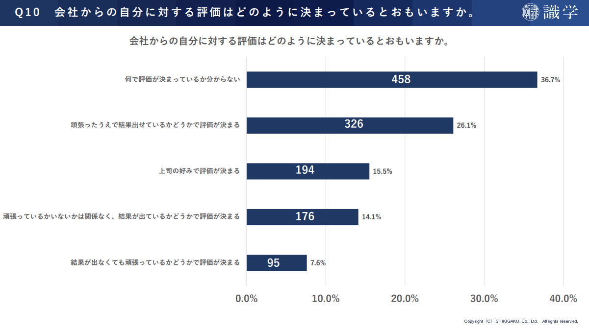 問10: 会社からの自分に対する評価はどのように決まっているとおもいますか