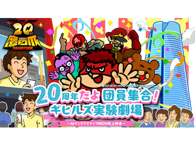 DLEでは2026年~2027年を「鷹の爪 20th ANNIVERSARY YEAR」と位置づけ、年間を通して様々な記念プロジェクトを展開してまいります。その幕開けとして、本シリーズでこれまで様々なイベントを開催してきた鷹の爪団の聖地とも言える六本木ヒルズにて、キックオフイベント『20周年だよ 団員集合!ギヒルズ実験劇場~AIインタラクティブMOVIE上映会~』を開催いたします。