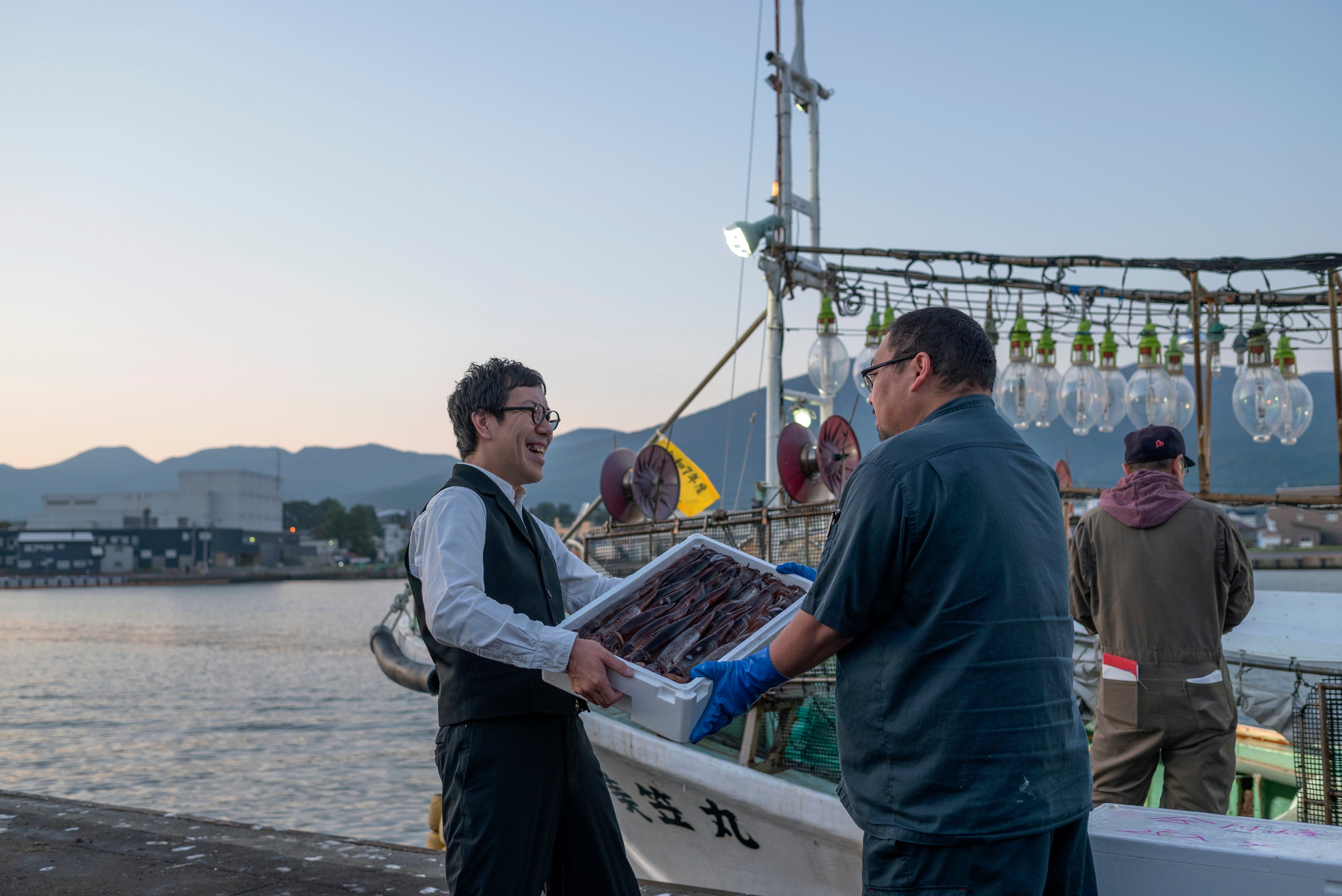 岩内郡漁業協同組合|船からの水揚げ・旅館主人の仕入れに同行