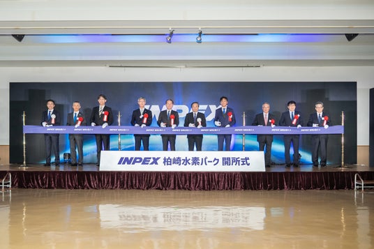 NEDOの補助事業である「燃料アンモニア利用・生産技術開発/ブルーアンモニア製造に係る技術開発」(以下、本事業)の支援のもと、株式会社INPEXは新潟県柏崎市に国内初となるブルー水素、ブルーアンモニア製造実証設備を建設しました。この設備を含む一連の施設を「柏崎水素パーク」と総称し、本日、開所式を行いました。