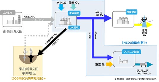 本事業は、製造時に発生する二酸化炭素(CO2)を分離・回収して大気への排出を抑えたブルー水素とブルーアンモニアを、その製造から利用まで一貫して行う、国内初の実証プロジェクトです。
