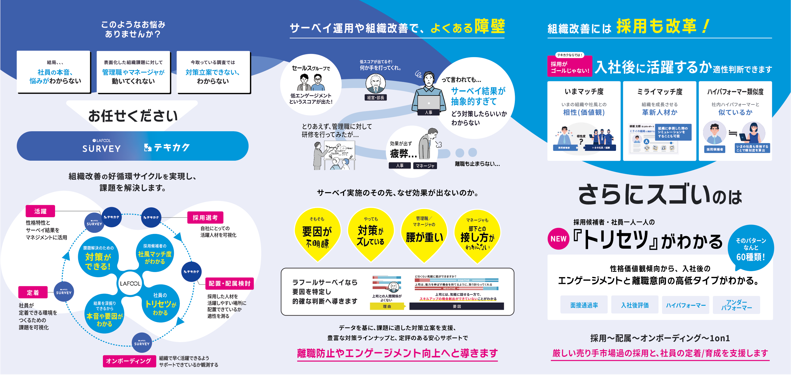 サーベイで従業員の声を集めても、現場の行動変容に結びつかない。