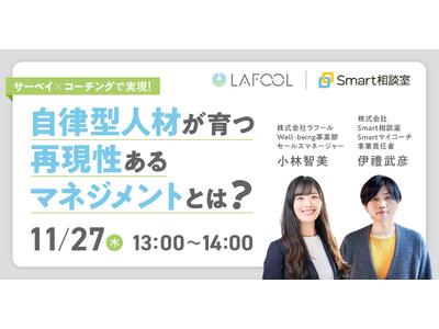 こうした課題に対し、本セミナーではSmart相談室が提供する“コーチング型マネジメントの成功パターン”と、ラフールが保有するサーベイデータを組み合わせ、「行動変容が起きるマネジメント」の実践プロセスをわかりやすく解説します。
