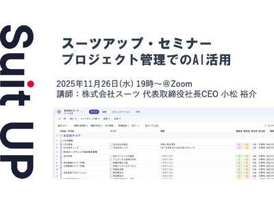 株式会社スーツ(所在地:東京都千代田区、代表取締役社長CEO:小松 裕介)は、2025年11月26日(水)19時から、当社代表の小松が講師を務めるスーツアップ・セミナー「プロジェクト管理でのAI活用」を無料開催します。