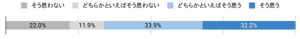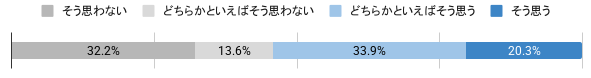 「思わない」「どちらかというとそう思わない」が計55.9%を占める結果となりました。