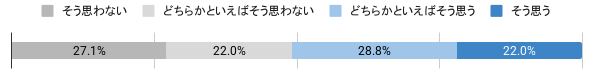 「(できていないと)思わない」が計49.1%、「思う」が計50.8%と、意見が分かれる結果となっています。