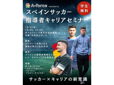 合同会社バロンピエスポーツマネジメントはエイ・フォース株式会社(本社:東京都千代田区)と共同で、学生向け特別講習会「スペインサッカー × キャリア教育セミナー」を開催します。