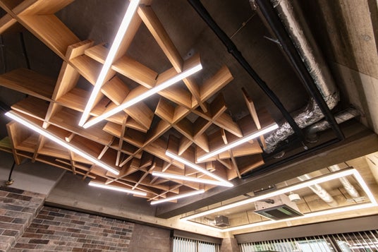 この“A”の造作は、VUILD株式会社※2が照明計画と空間デザインの双方を手がけ、デジタルファブリケーション技術(3Dプリンターやレーザーカッターなど、コンピューター制御の機械を用いてデジタルデザインから直接プロダクトを生み出す技術)を活用して設計から製作まで一貫して対応しました。光の角度や色温度、素材の質感を総合的にシミュレーションすることで、デザイン性と機能性を高い次元で融合させ、スタートアップの創造的な活動を支える象徴的な空間を実現しています。
