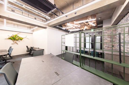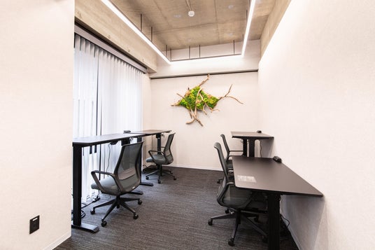 本区画は、打合せエリアと執務エリアをゾーニングし、デザイン、アート、家具、グリーンを組み合わせたクリエイティブなオフィス空間を整備しました。デスク、チェア、収納、照明などの家具・什器一式を完備し、入居後すぐに業務を開始できる利便性の高い環境を提供しています。