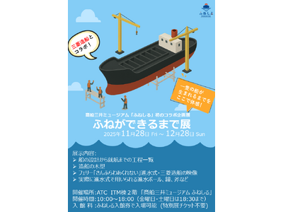 商船三井ミュージアム「ふねしる」(註1)は、船の誕生から完成までの過程をわかりやすく紹介する特別企画展『ふねができるまで展』を、2025年11月28日(金)から12月28日(日)まで開催します。本企画展は、船づくりの魅力をより多くの方に知っていただくため、三菱造船株式会社(註2)とのコラボレーションにより実現しました。
