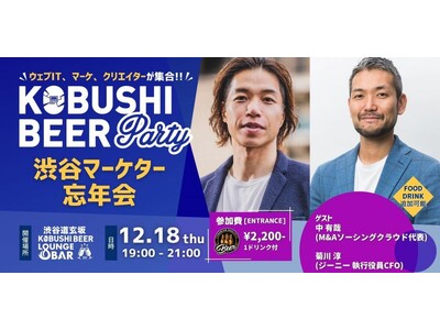2025年12月18日(木)19:00~M&Aソーシングクラウドの中代表・ジーニーの菊川執行役員をゲストに迎え、デジタルマーケティング、新規事業、DXに携わるビジネスパーソンが集う忘年会を開催すると発表した。