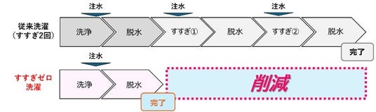 図1:従来洗濯とすすぎゼロ洗濯の工程比較(イメージ)