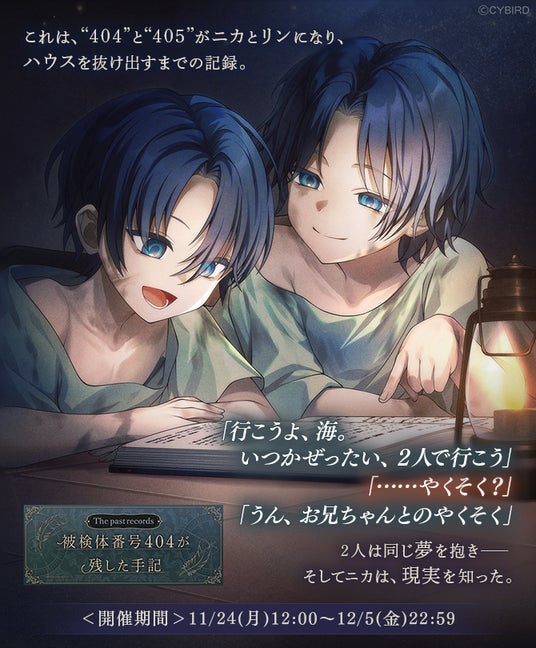 「ニカ・シュワルツ」本編ストーリー配信を記念して、アプリ内では本編進めようイベント「The past records~被検体番号404が残した手記~」を開催中です。
