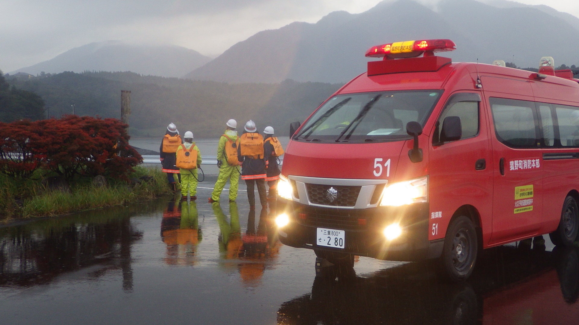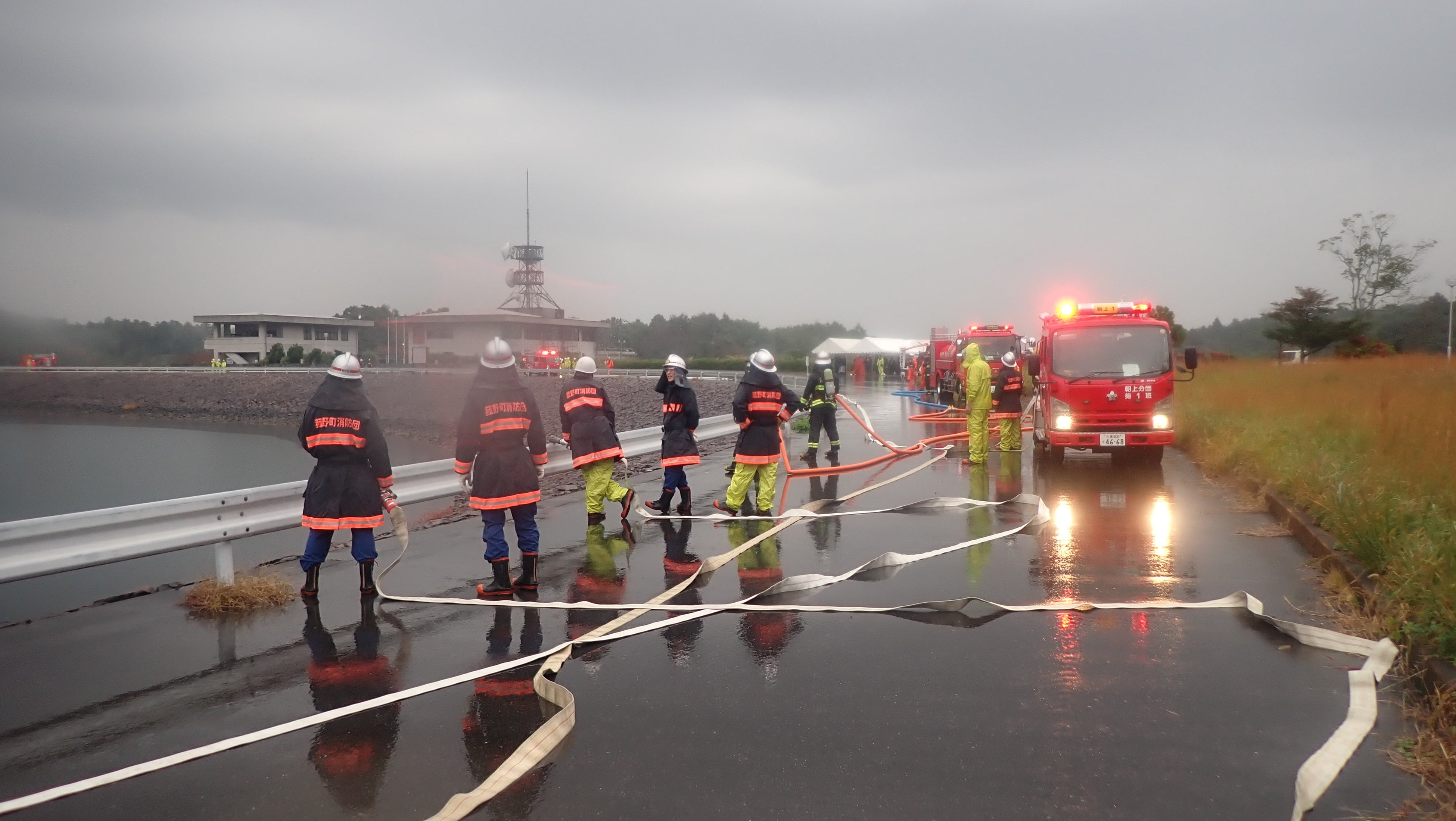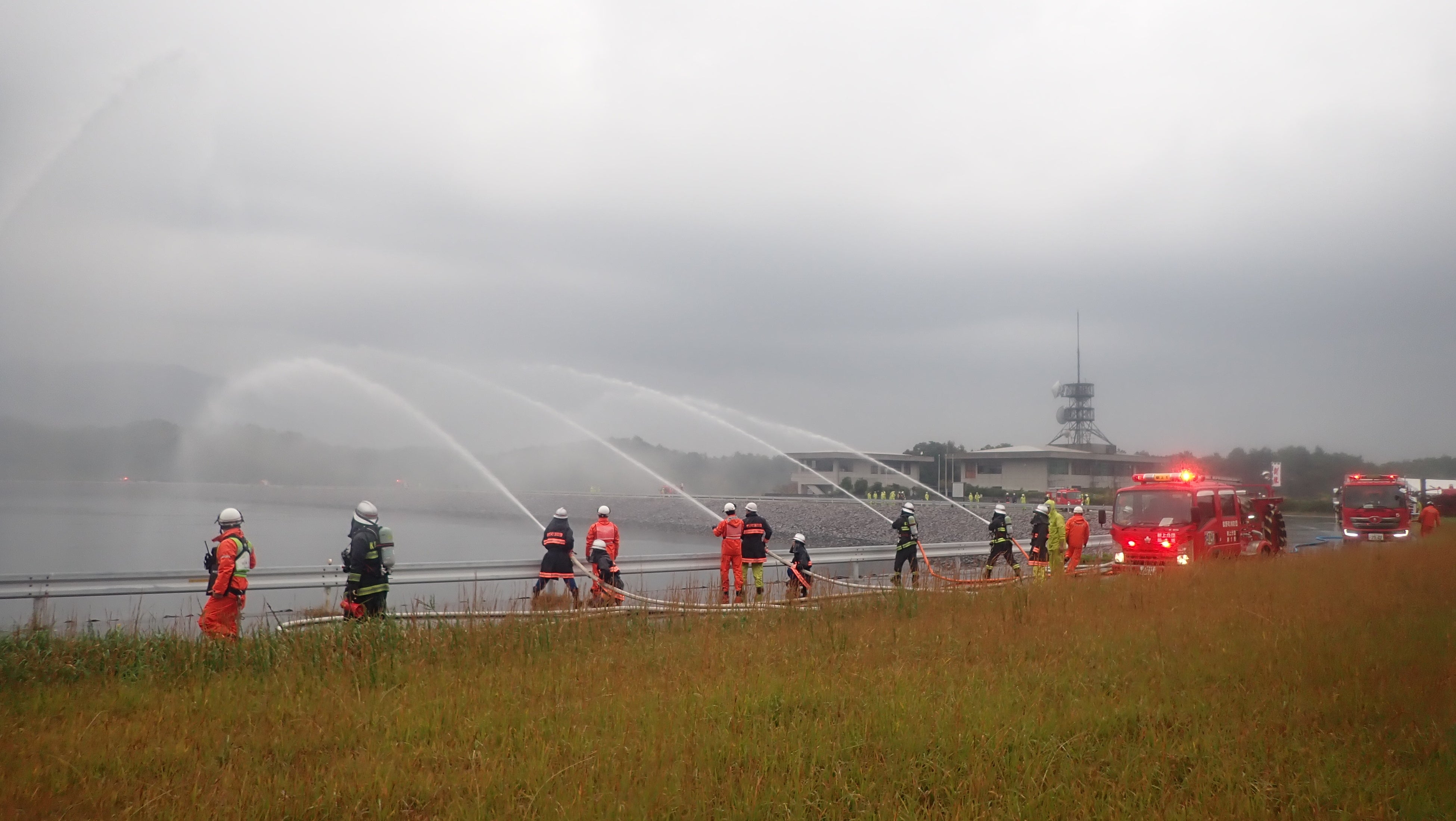 令和7年11月9日(日)午前7時から、秋の火災予防運動の一環として独立行政法人水資源機構三重用水菰野調整池において、林野火災を想定した特別消防訓練を実施しました。