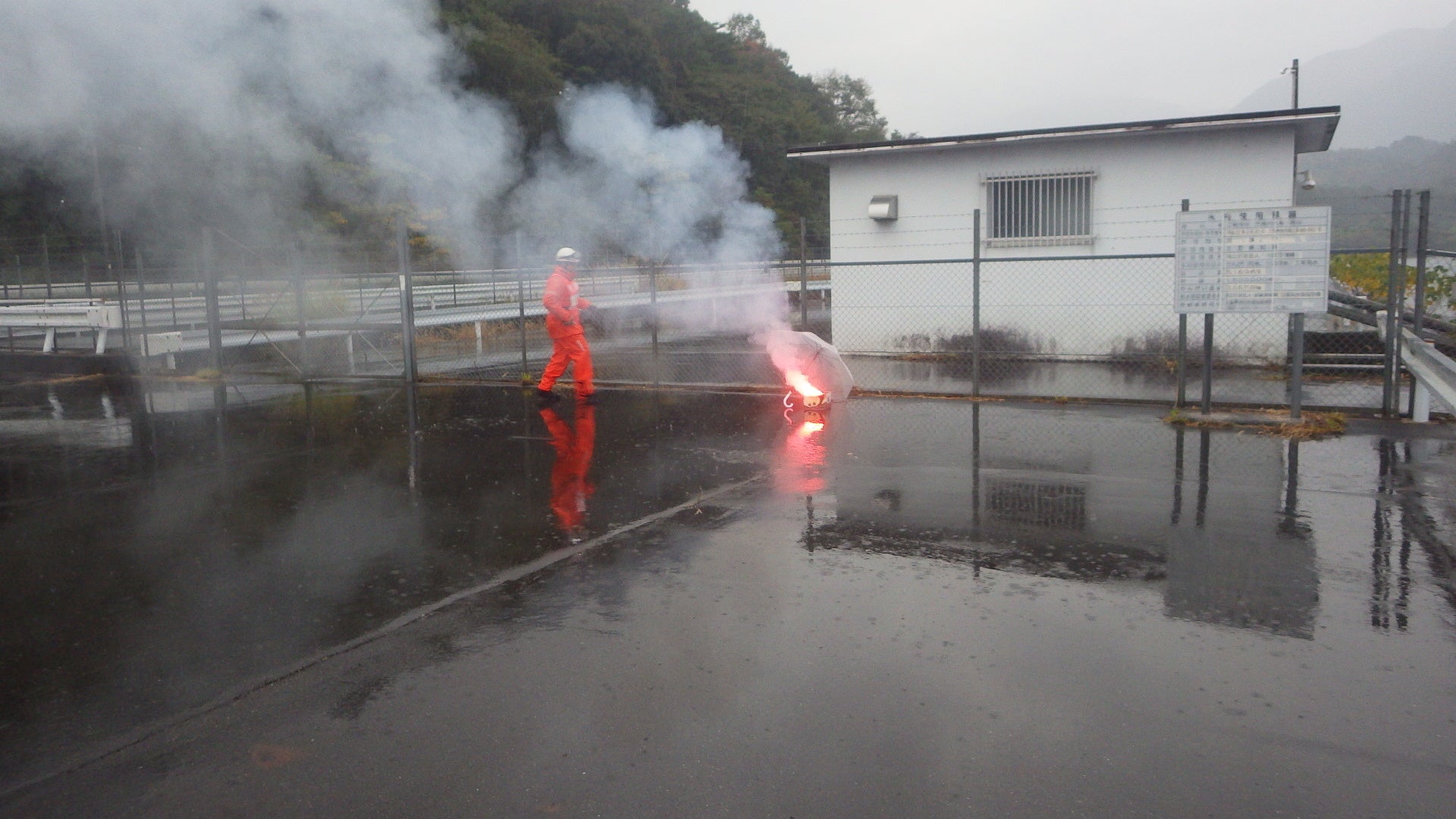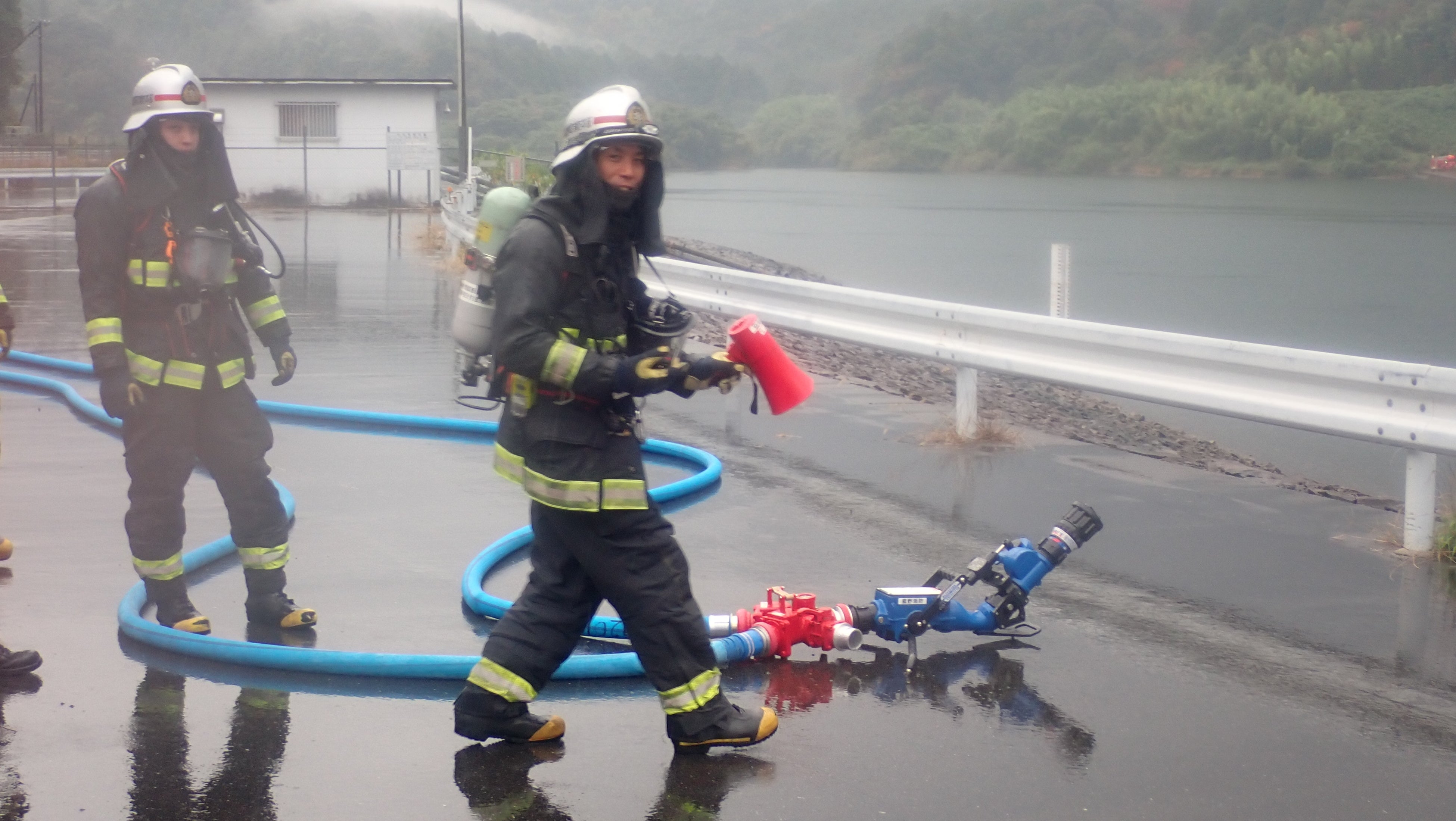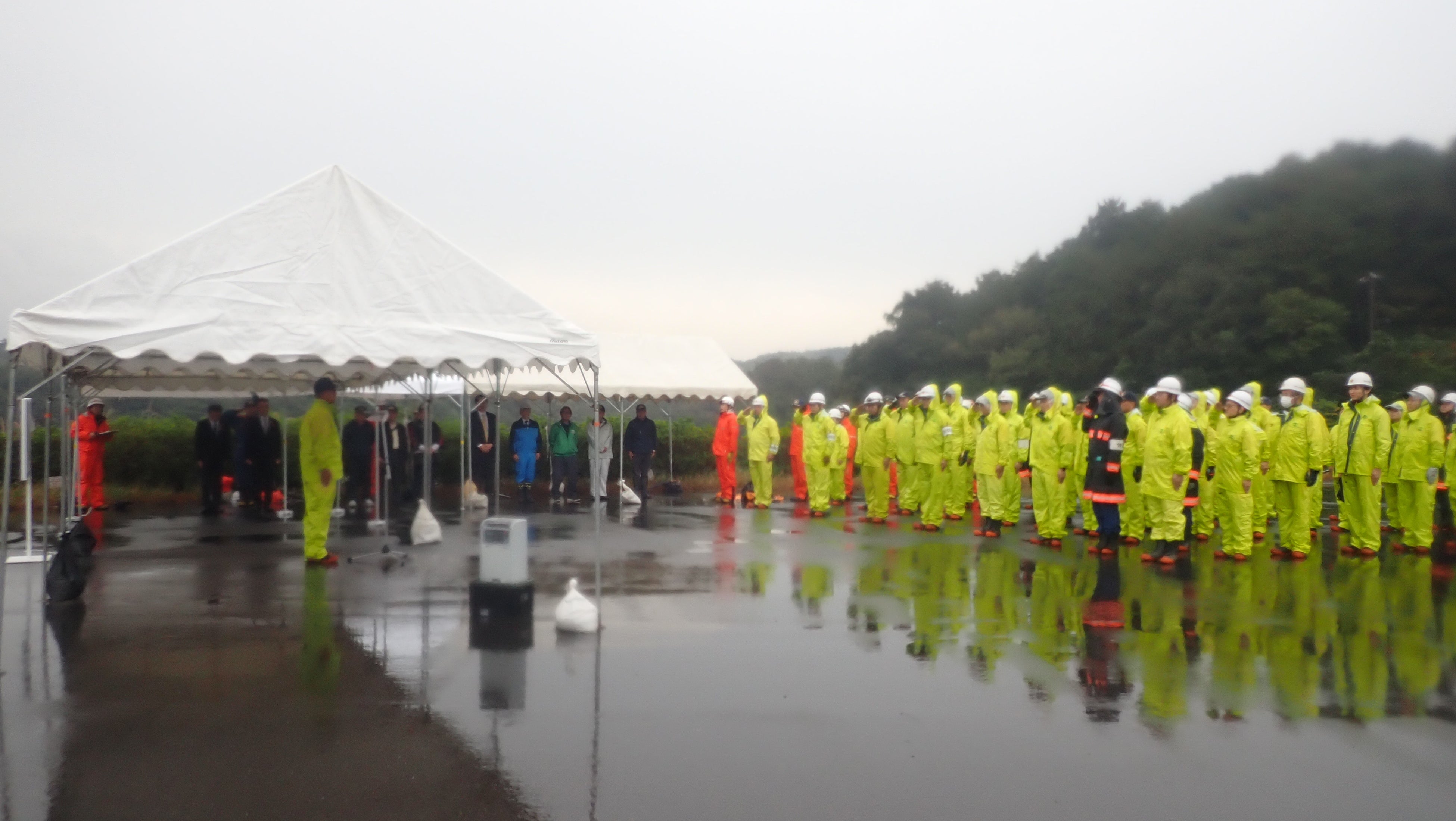 令和7年11月9日(日)午前7時から、秋の火災予防運動の一環として独立行政法人水資源機構三重用水菰野調整池において、林野火災を想定した特別消防訓練を実施しました。