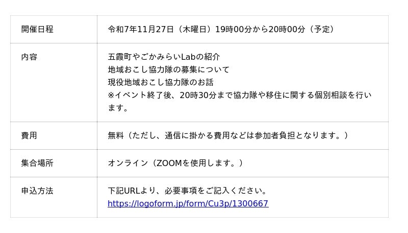「五霞町(ごかまち)」で人・事業者を繋ぐ地域活性化事業に取り組むメンバーを募集しています。11月27日(木)にオンライン説明会を開催します。